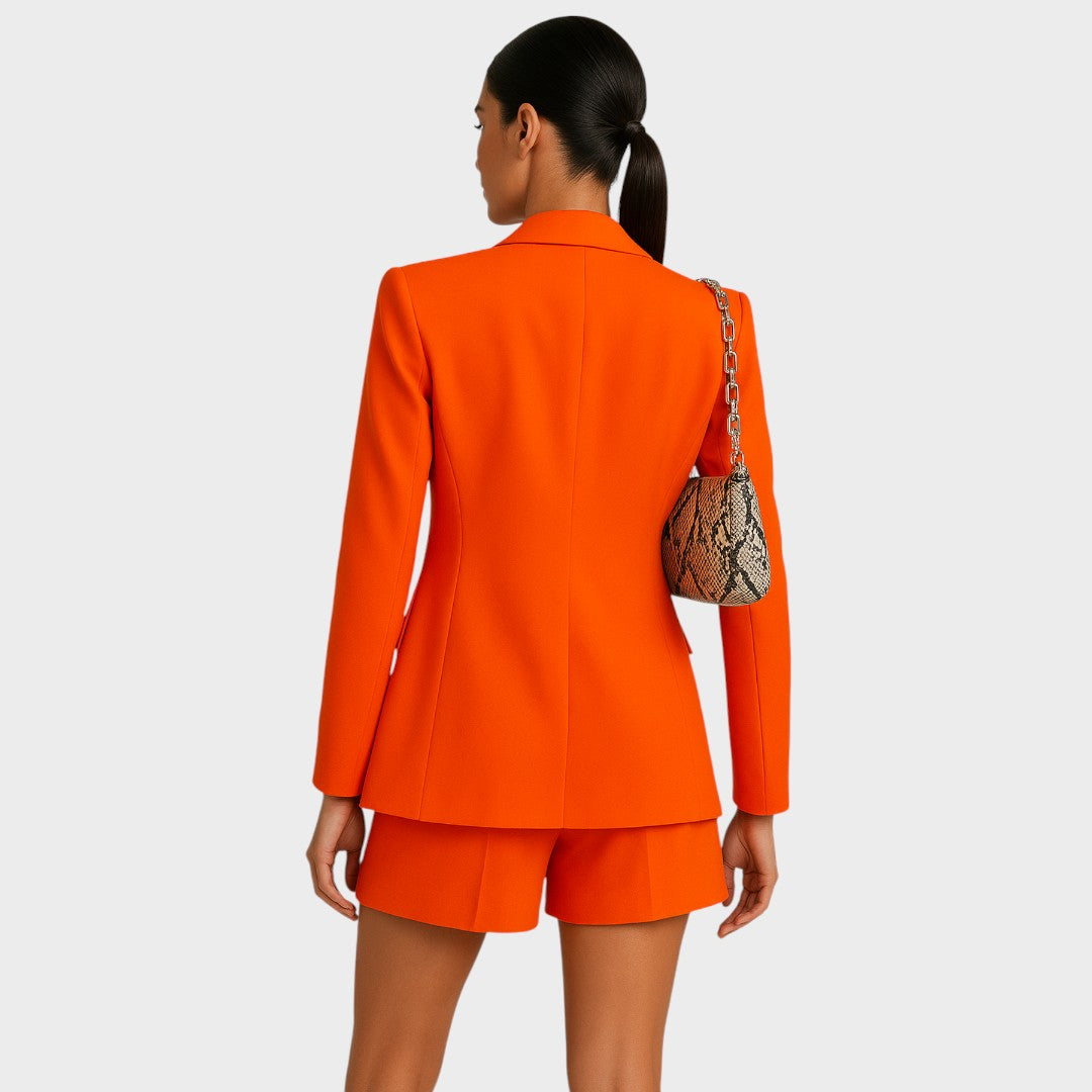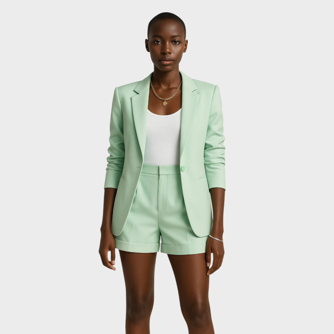 Unesite dašak samopouzdanja i elegancije u svoj stil s ovim modernim kompletom sako–shorts. Savršen je izbor za poslovne prilike, večernje izlaske ili modne kombinacije koje traže hrabrost i ženstvenost. Lagani materijal i kroj pružaju udobnost, dok moderan dizajn jamči da ćete uvijek biti u središtu pažnje.