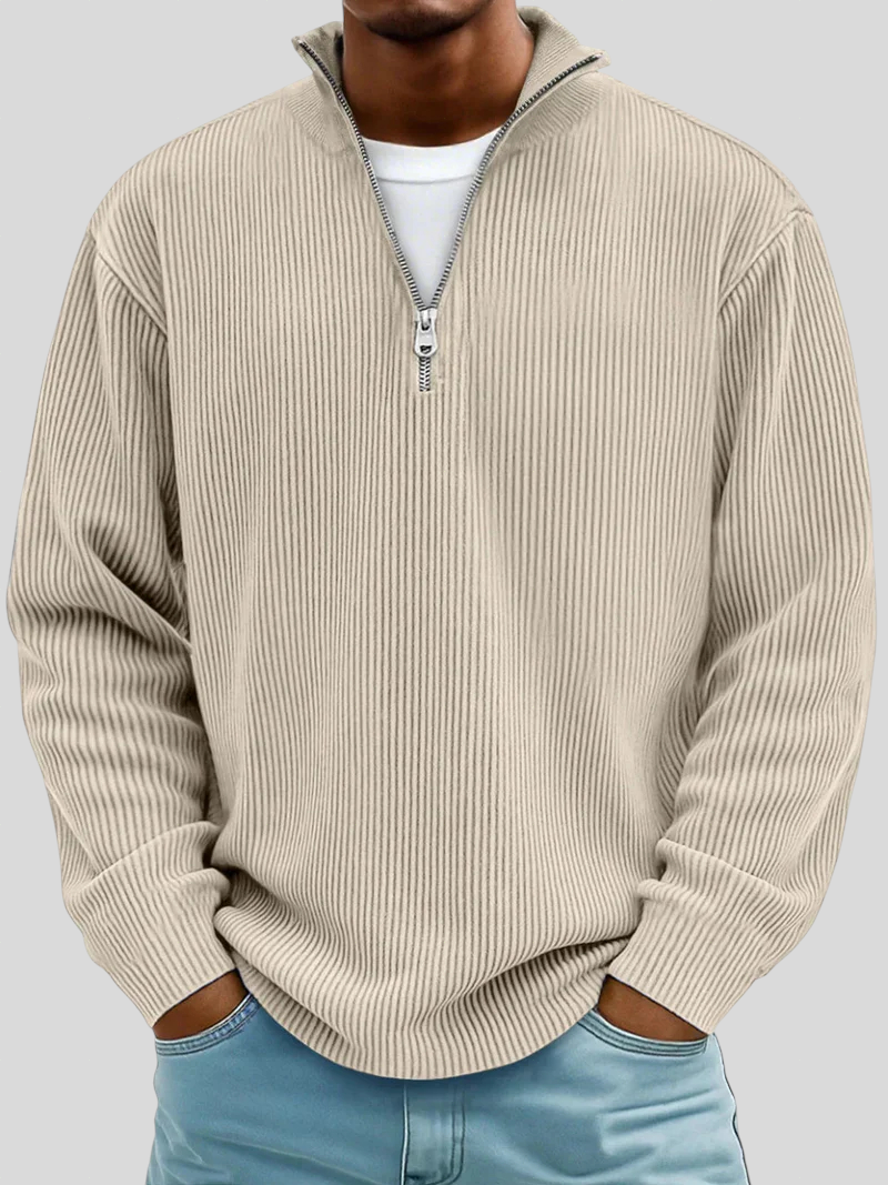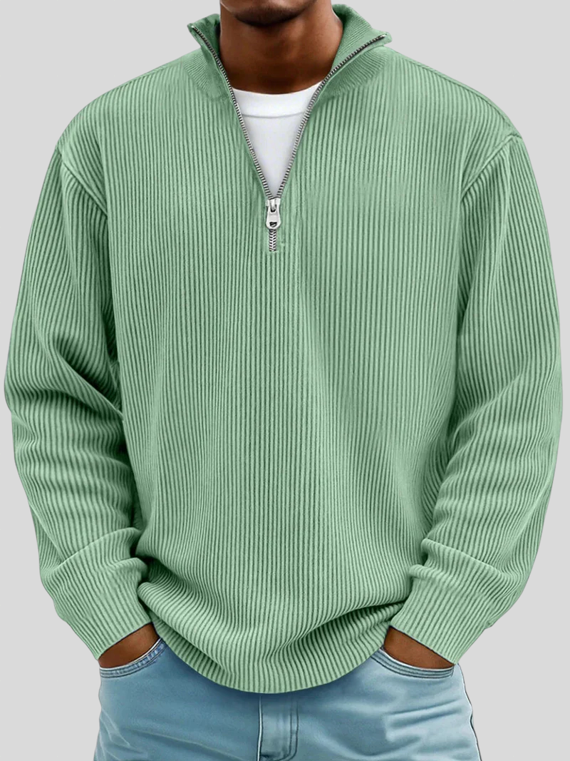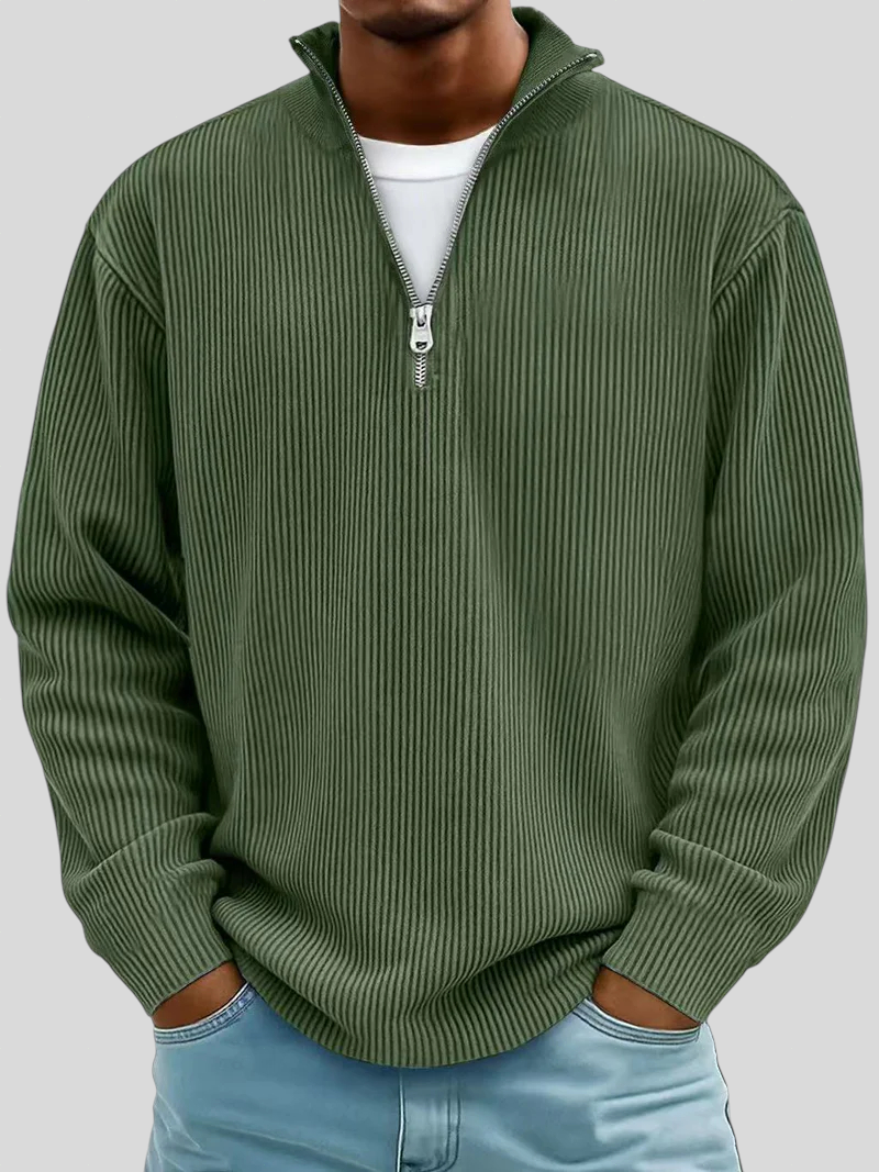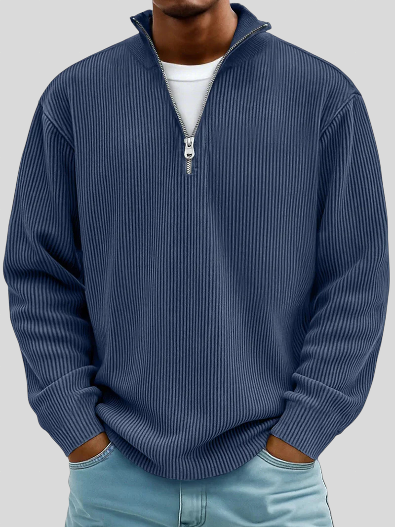 Ovaj pulover savršen je izbor za one koji cijene udobnost i stil. Dizajn s polu-patentnim zatvaračem i elegantnom teksturom pruža moderan izgled, čineći ga idealnim za svaku priliku – od ležerne do sofisticirane.