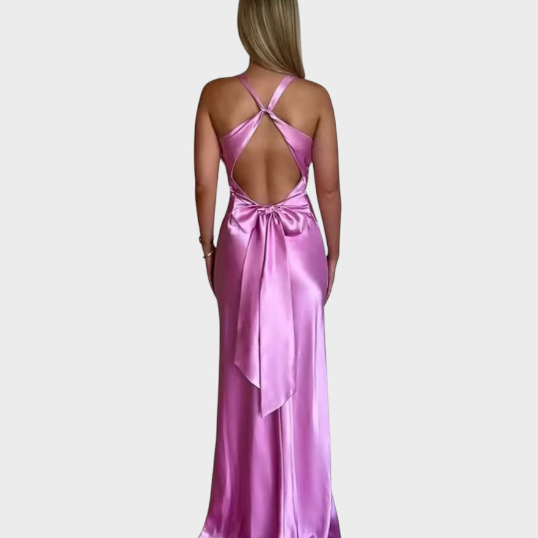Elegantna satenska haljina s dubokim dekolteom